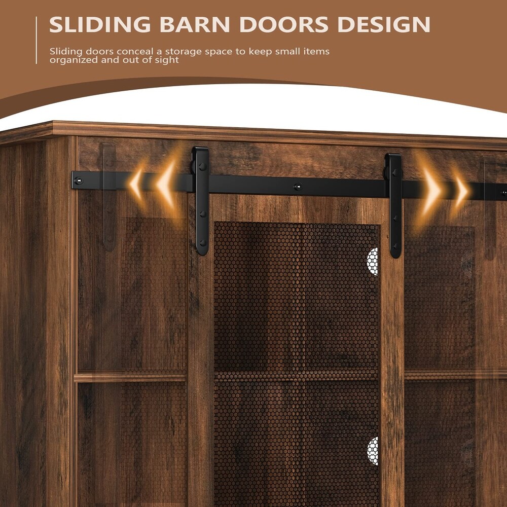 [Sliding Barn Doors] Two movable barn doors on the TV stand for convenient access to cabinets. Quality steel bar make doors slide smoothly, and no noise during movement. Two sliding barn door design to conceal side storage cabinets or center storage shelves.